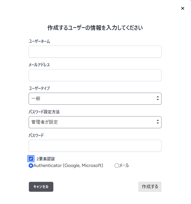 下記項目について、作成するユーザーの情報を入力します。
